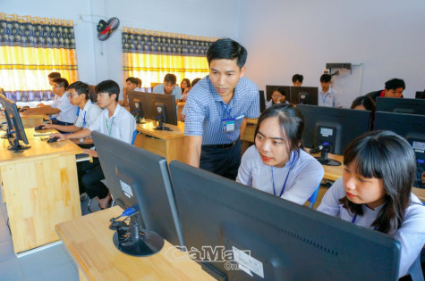 Giờ thực hành tin học của thầy và trò Trường THPT Hồ Thị Kỷ (TP Cà Mau). Ảnh: BĂNG THANH |