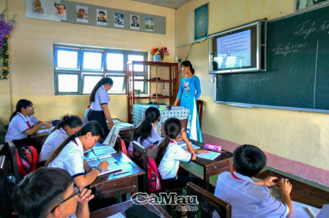 Phòng học Ngữ Văn của trường THCS Hàng Vịnh, xã Hàng Vịnh, huyện Năm Căn. Ảnh: B.THANH |
