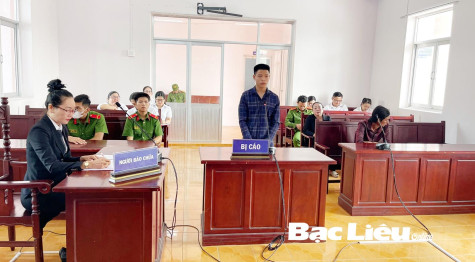 Bị cáo Huỳnh Nhật Linh tại phiên tòa xét xử trực tuyến sơ thẩm hình sự của TAND tỉnh. Ảnh: K.P