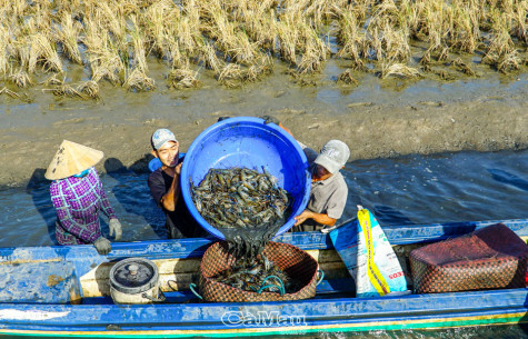 | Nông dân xã Trí Lực, huyện Thới Bình thắng lớn vụ lúa - tôm. |