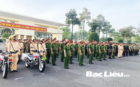 Lực lượng Công an tỉnh ra quân bảo vệ an ninh trật tự năm 2023. Ảnh: K.K