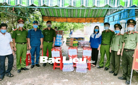 (BL-HD) Công an huyện Phước Long vừa tổ chức đoàn đi thăm, tặng quà cho 9 chốt trực và người dân trong khu vực cách ly, phong tỏa thuộc các ấp của xã Vĩnh Phú Tây và Vĩnh Thanh. Từ nguồn vận động mạnh thường quân và quyên góp trong cán bộ, chiến sĩ Công an huyện, đoàn đã tặng 100 thùng mì, 30 lốc nước lọc, 10 thùng sữa, 100 hộp khẩu trang y tế, kính ngăn giọt bắn, 100 suất bánh canh cua cùng một số nhu yếu phẩm cần thiết khác... cho lực lượng làm nhiệm vụ.