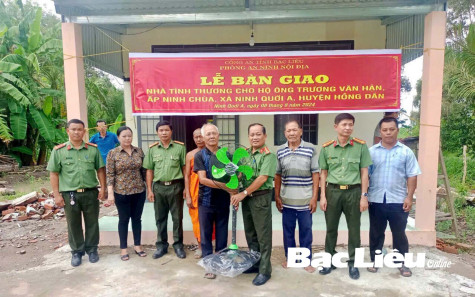 Điển hình là từ đầu nhiệm kỳ đến nay, Công an Bạc Liêu đã vận động cán bộ, chiến sĩ và mạnh thường quân xây dựng hàng trăm căn nhà đồng đội, nhà tình nghĩa, tình thương; nhận đỡ đầu, hỗ trợ vốn, phương tiện sản xuất cho hàng trăm hộ dân có hoàn cảnh khó khăn, cùng hàng ngàn phần quà cho gia đình chính sách, hộ nghèo, học sinh hiếu học… với tổng trị giá hàng chục tỷ đồng.
