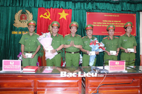 Thực hiện cao điểm tấn công trấn áp tội phạm theo Kế hoạch của Công an tỉnh Bạc Liêu, sáng 19/12, Công an TP. Bạc Liêu đã tổ chức thưởng nóng 5 đơn vị, gồm: Đội CSĐT tội phạm về ma túy; Công an các Phường 1, 2, 5 và 7 vì đã lập thành tích xuất sắc trong 3 ngày đầu ra quân cao điểm tấn công trấn áp tội phạm bảo vệ tết Nguyên đán Giáp Thìn 2024.