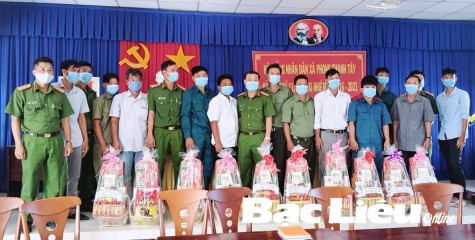 Công an TX. Giá Rai tặng quà tết cho các tổ chức quần chúng bảo vệ an ninh trật tự xã Phong Thạnh Tây. Ảnh: T.Đ