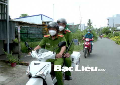 Công an xã Vĩnh Lộc A (huyện Hồng Dân) tuần tra bảo đảm an ninh trật tự trên địa bàn. Ảnh: T.H
