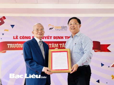 Tại buổi lễ, thay mặt Chủ tịch UBND TP. Bạc Liêu, ông Trần Bằng Phi - Trưởng phòng GD-ĐT thành phố đã công bố và trao Quyết định cho phép thành lập Trường mầm non Tâm Tâm - Tràng An; Quyết định bổ nhiệm chức danh Hiệu trưởng, Phó Hiệu trưởng... của Chủ tịch UBND TP. Bạc Liêu.