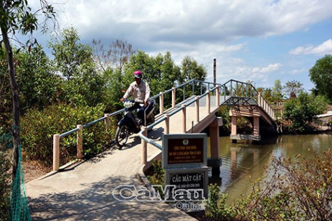 | Cầu Mật Cật được xây dựng từ nguồn quỹ đóng góp tự nguyện của cán bộ, CNVC-LĐ trên địa bàn huyện. |