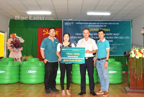 Theo CĐCS BIDV Bạc Liêu, từ ngày 6 - 15/6, CĐCS BIDV Bạc Liêu trao tặng 150 bồn chứa nước ngọt cho các hộ dân có hoàn cảnh khó khăn ở các huyện ven biển của tỉnh, tổng trị giá của chương trình là 195 triệu đồng.