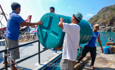 | Người dân Hòn Chuối được hỗ trợ bồn trữ nước ngọt phục vụ sinh hoạt. |