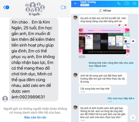 Thời gian gần đây, nhiều người dùng mạng xã hội, người dùng điện thoại bức xúc khi “bị” nhận nhiều tin nhắn qua Zalo, Facebook, qua SIM điện thoại những lời mời chào công khai mua bán, môi giới mại dâm. Những tin nhắn thường là từ các số SIM rác cứ thế tấn công người dùng bằng những ngôn từ phản cảm, không phù hợp thuần phong mỹ tục.