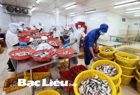 Công nhân làm việc tại Công ty Cổ phần Chế biến và Dịch vụ thủy sản Cà Mau - Chi nhánh Bạc Liêu.