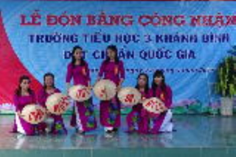 Tiết mục văn nghệ tại buổi lễ đón nhận danh hiệu trường đạt chuẩn quốc gia của trường Tiểu học 3 xã Khánh Bình. |