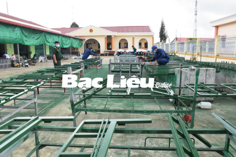 Bộ CHQS tỉnh đang khẩn trương bàn giao 2.500 chiếc giường sắt cho các địa phương, đơn vị đặt mua. Cụ thể, TP. Bạc Liêu 500 chiếc giường; TX. Giá Rai 400 chiếc; các huyện: Đông Hải 500 chiếc; Hòa Bình 300 chiếc; Phước Long 150 chiếc; Vĩnh Lợi 150 chiếc và khu Ký túc xá Trường cao đẳng Kinh tế - Kỹ thuật Bạc Liêu 500 chiếc giường. Riêng huyện Hồng Dân tự đóng giường gỗ. Số giường sắt trên do các địa phương đặt hàng Bộ CHQS tỉnh sản xuất. Mỗi chiếc giường có chiều ngang 1m, dài 2m, được bố trí ở các khu cách ly tập trung chuẩn bị tiếp nhận đồng hương từ các tỉnh, thành trở về.