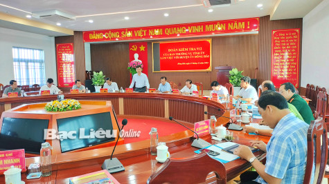 Đoàn kiểm tra 912 của Ban Thường vụ Tỉnh ủy làm việc với Huyện ủy Đông Hải về tình hình thực hiện công tác tiếp dân trên địa bàn. Ảnh: Quốc Quý