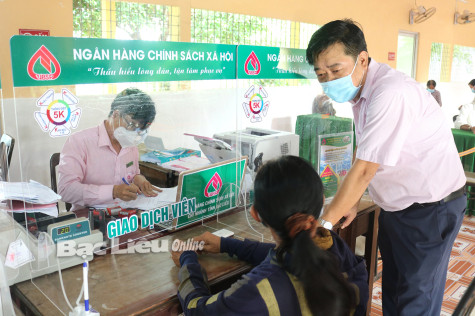 Ông Trần Quang Sơn - Giám đốc Ngân hàng CSXH tỉnh thăm hỏi phụ nữ nghèo vay vốn giải quyết việc làm trên địa bàn TP. Bạc Liêu.
