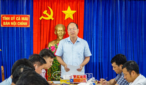 Đồng chí Dương Minh Vũ, Phó Trưởng Ban Nội chính Tỉnh uỷ Cà Mau, trình bày báo cáo tại buổi làm việc.