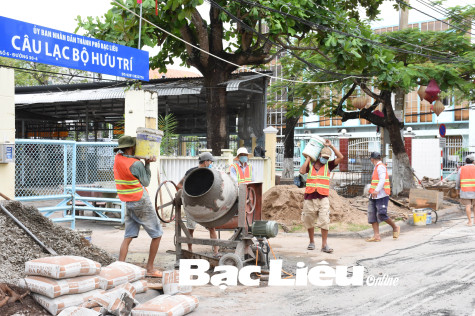 Xây dựng công trình nâng cấp lộ và mở rộng vỉa hè trên địa bàn TP. Bạc Liêu. Ảnh: L.D