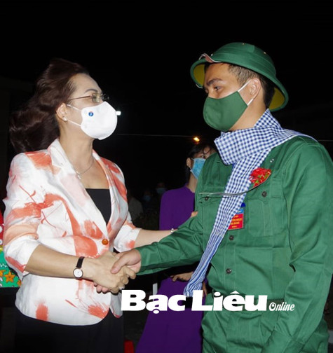 Phó Bí thư Thường trực Tỉnh ủy - Lê Thị Ái Nam động viên thanh niên lên đường làm nhiệm vụ bảo vệ Tổ quốc năm 2021. Ảnh: T.H