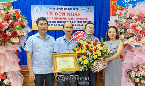 Sau thời gian tích cực xây dựng và hoàn thiện cơ sở vật chất, hệ thống quản lý chất lượng, sáng 9/12, Công ty Cổ phần Cấp nước Cà Mau đã tổ chức lễ đón nhận chứng chỉ công nhận ISO/IEC 17025:2017 do Văn phòng Công nhận năng lực Đánh giá sự phù hợp về Tiêu chuẩn Chất lượng (AOSC) công nhận.