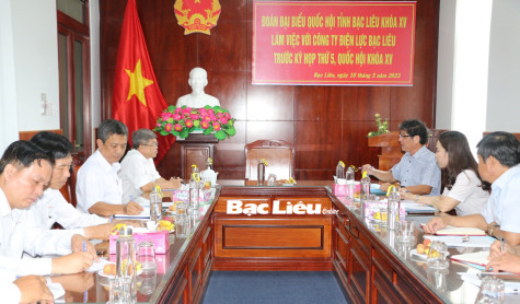 Để phục vụ kỳ họp thứ năm, Quốc hội khóa XV, sáng ngày 16/5/2023, ông Nguyễn Huy Thái - Phó trưởng đoàn chuyên trách Đoàn ĐBQH tỉnh cùng ĐBQH Lê Thị Ngọc Linh đã có buổi làm việc với đại diện Công ty Điện lực Bạc Liêu để nghe báo cáo về tình hình sản xuất - kinh doanh, cung cấp điện cho nhân dân trên địa bàn tỉnh.