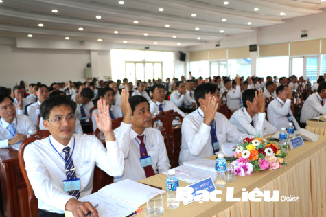 Biểu quyết thông qua Nghị quyết hội nghị. Ảnh: K.P