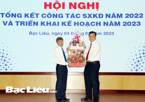 Tổng Công ty Điện lực miền Nam tặng quà cho Công ty Điện lực Bạc Liêu nhân dịp Công ty triển khai kế hoạch năm 2023. Ảnh: K.K