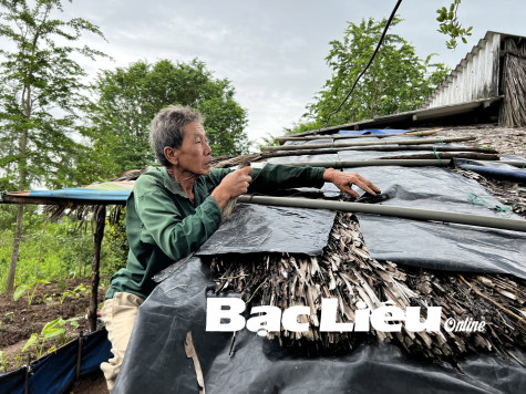 Hơn một tuần nay, sau những trận mưa, dông, căn nhà cũ kỹ của ông Đặng Tấn Dũng (ấp Vĩnh Mới, xã Vĩnh Thịnh, huyện Hòa Bình) lại thêm phần nghiêng ngả, dột nát, dù trước khi mùa mưa bắt đầu, vợ chồng ông đã tranh thủ chằng chống, gia cố. Ông Dũng cho biết: “Vợ chồng tôi không có đất sản xuất, hàng ngày tôi đi giăng lưới bắt cá, đẻn…, vợ tôi thì nuôi được mấy con gà, vịt thu nhập cũng chẳng được bao nhiêu, do đó dù nhà đã xuống cấp nhưng không có điều kiện sửa chữa. Mấy ngày nay trời mưa liên miên kèm gió mạnh, vợ chồng tôi không dám ngủ vì sợ nhà sập”.