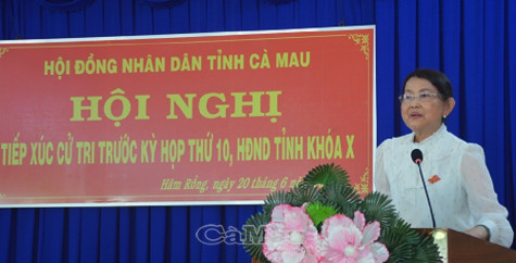 Tại buổi tiếp xúc gần 100 cử tri xã Hàm Rồng, huyện Năm Căn, đại biểu Huỳnh Thị Thanh Loan, Uỷ viên Ban Thường vụ Tỉnh uỷ, Trưởng ban Tổ chức Tỉnh uỷ, thông tin về các chế độ chính sách của cán bộ chuyên trách cấp xã; người hoạt động không chuyên trách ấp khóm; chế độ tuyên truyền viên dân số... Các thông tin chế độ chính sách này đều được đăng tải trên trang thông tin của HĐND tỉnh, cử tri có thể tìm hiểu, nghiên cứu. Nếu có vấn đề gì chưa rõ, cử tri gửi văn bản về Văn phòng HĐND tỉnh, các ban HĐND tỉnh sẽ tham mưu trình tại kỳ họp tới.