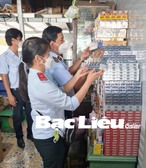 Cục Quản lý thị trường tỉnh phối hợp với cơ quan liên ngành kiểm tra mặt hàng thuốc lá. Ảnh: T.Q