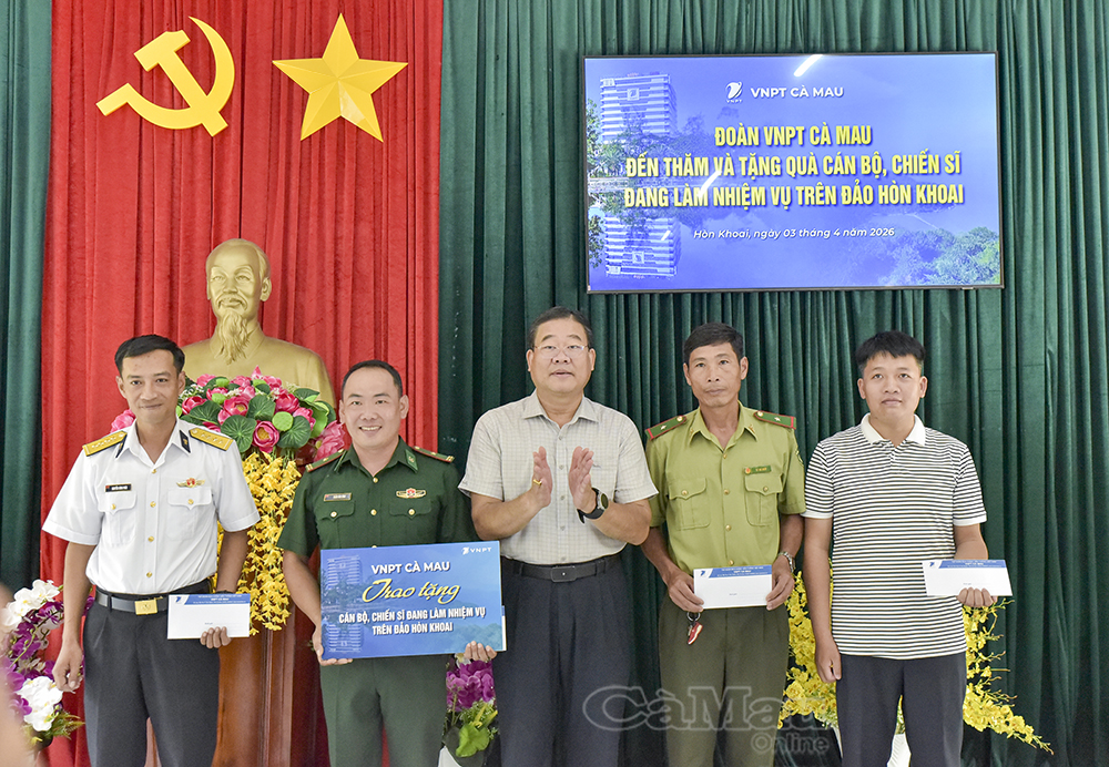 Dịp này, VNPT Cà Mau trao tặng quà cho các lực lượng với tổng kinh phí 20 triệu đồng, đồng thời tổ chức kiểm tra, bảo trì trạm phát sóng tại Hòn Khoai.