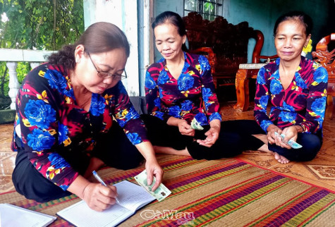 | Phụ nữ ấp Trần Mót hùn tiền tham gia BHYT xoay vòng. |