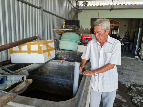 Mô hình đổ nước mặn của hội viên cựu chiến binh phường Nhà Mát (TP. Bạc Liêu). Ảnh: T.L