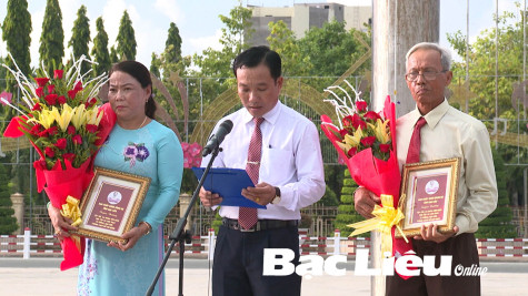 CCB Trần Văn Tèo (bìa phải) được tuyên dương năm 2021 vì có nhiều đóng góp cho quê hương. Ảnh: C.L