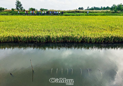 Ðể minh chứng hiệu quả mô hình sản xuất lúa kết hợp nuôi xen canh các đối tượng nuôi, tại buổi hội thảo đầu bờ, nông dân được tham quan thực tế ruộng lúa - tôm đang trĩu hạt. Ðồng thời, hội thảo còn trưng bày sản phẩm tôm sú, tôm càng xanh và cá kèo được nuôi trong ruộng lúa.