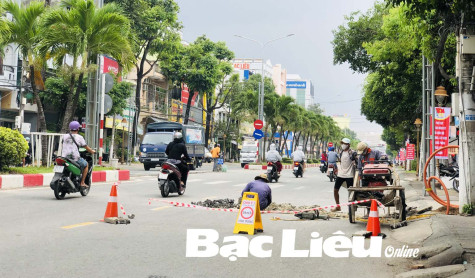 Sau khi báo Bạc Liêu ngày 17/12 đăng thông tin đơn vị thi công công trình trên đường Trần Phú (TP. Bạc Liêu) không bố trí biển báo, rào chắn thì đến ngày hôm sau tình trạng này đã được khắc phục - (ảnh).