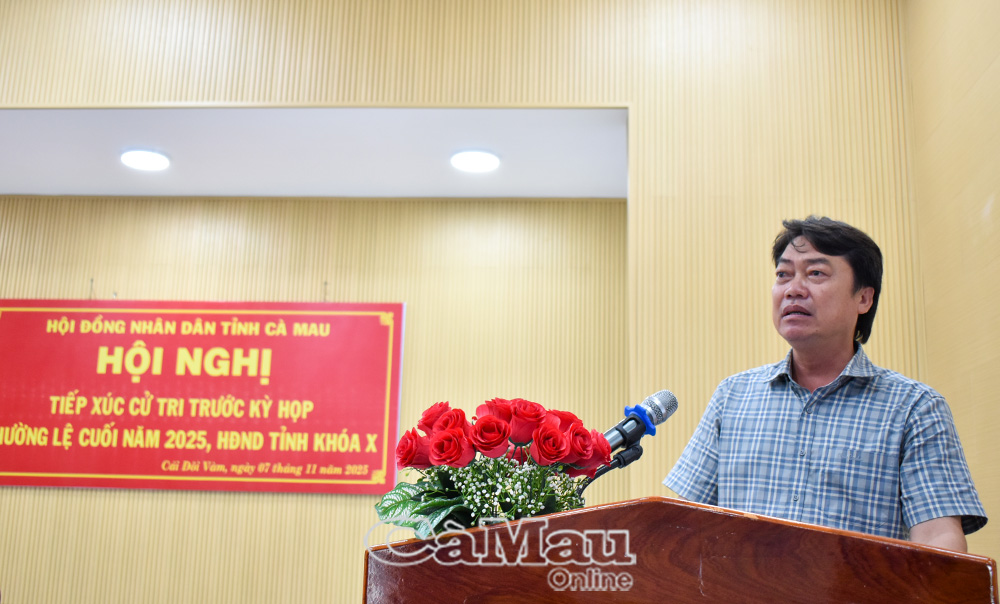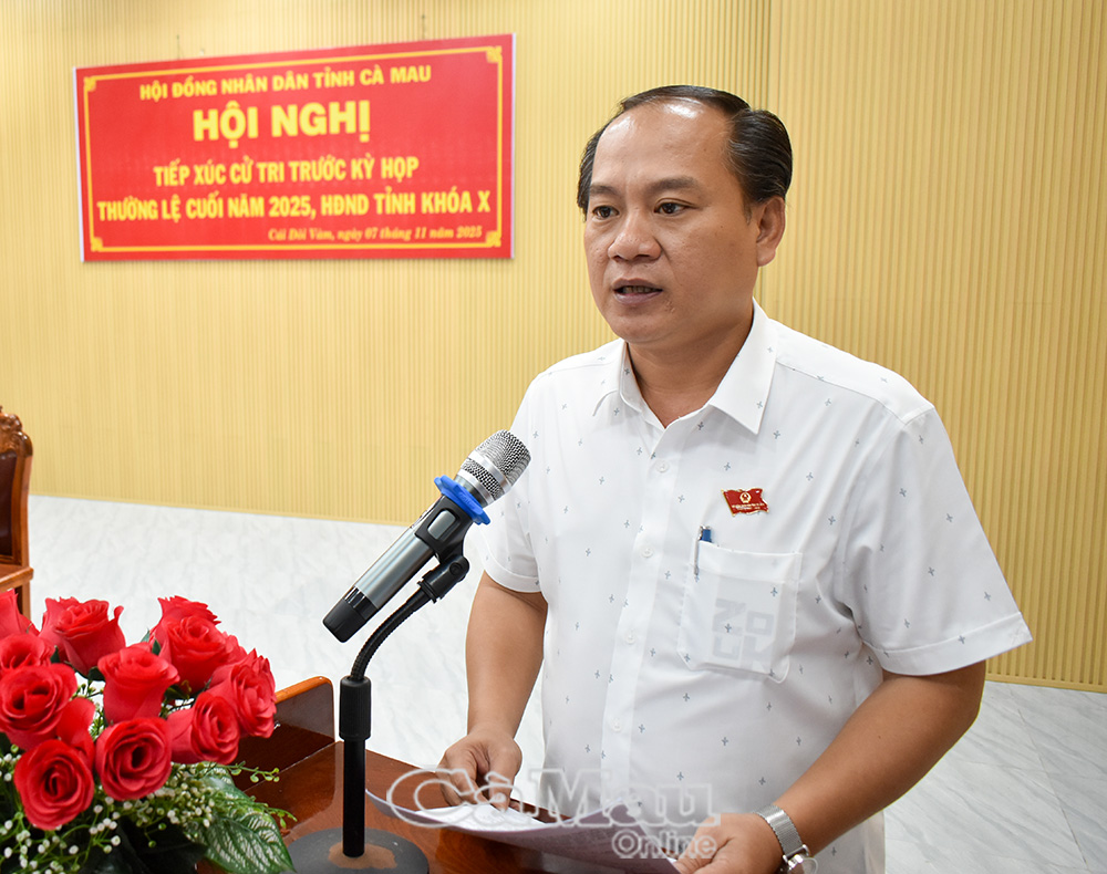 * Sáng cùng ngày, Tổ đại biểu HĐND tỉnh Cà Mau gồm các đồng chí: Nguyễn Chí Công, Phó Giám đốc Sở Văn hoá, Thể thao và Du lịch - Trưởng đoàn; Nguyễn Hoàng Đạo, Bí thư Đảng uỷ, Chủ tịch HĐND xã; và Phạm Văn Den, Phó Bí thư, Chủ tịch UBND xã Cái Đôi Vàm, có buổi tiếp xúc với 115 cử tri địa phương trước Kỳ họp thường lệ cuối năm 2025, HĐND tỉnh khóa X.