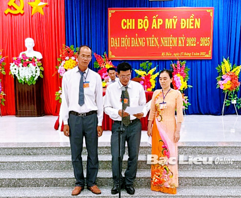 Chi ủy Chi bộ ấp Mỹ Điền (xã Long Điền Đông A, huyện Đông Hải) nhiệm kỳ 2022 - 2025 ra mắt, hứa hẹn trước Đại hội. Ảnh: Hồng Thắm