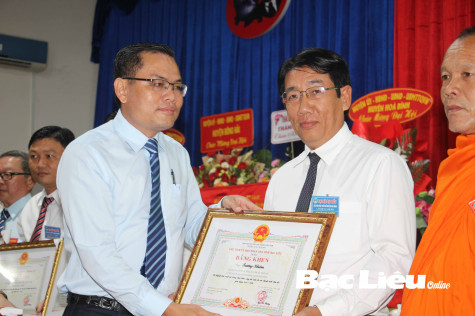 Ông Ngô Vũ Thăng - Phó Chủ tịch UBND tỉnh trao bằng khen cho các tập thể, cá nhân của huyện Hòa Bình có thành tích xuất sắc trong thực hiện công tác dân tộc và chính sách dân tộc giai đoạn 2019 - 2024.