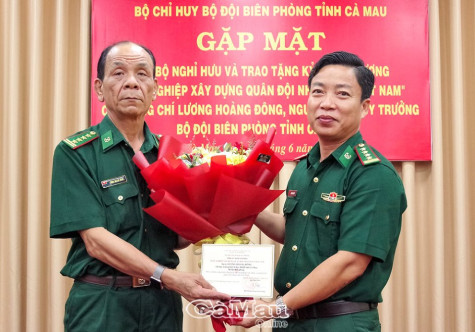 (CMO) Ngày 7/6, thừa ủy quyền của Bộ Quốc phòng, Bộ Tư lệnh Bộ đội Biên phòng, Đảng ủy, Bộ Chỉ huy Bộ đội Biên phòng (BĐBP) tỉnh Cà Mau tổ chức Lễ trao tặng Kỷ niệm chương vì sự nghiệp xây dựng Quân đội Nhân dân Việt Nam cho Đại tá Lương Hoàng Đông, nguyên Chỉ huy trưởng BĐBP tỉnh Cà Mau.