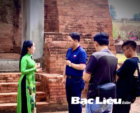 Ê-kíp chương trình quay hình tại Di tích nghệ thuật kiến trúc Tháp cổ Vĩnh Hưng. Ảnh: H.T