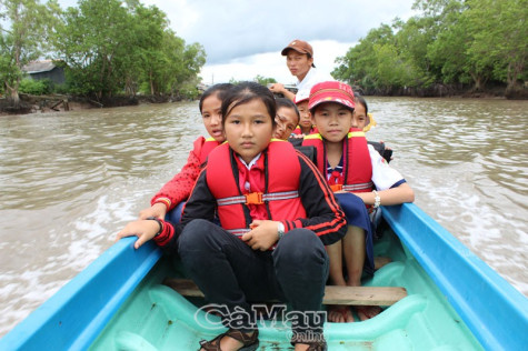 Hiện nay địa bàn huyện Ngọc Hiển vẫn còn nhiều ấp chưa có lộ giao thông đấu nối nên nhiều em đi học vẫn còn luỵ đò (nhất là địa bàn xã Tam Giang Tây, Viên An Ðông, Viên An, Ðất Mũi). Thầy Mai Kiến Oanh, Hiệu trưởng Trường Tiểu học 2, xã Đất Mũi, cho biết, trong năm học mới nhà trường còn khoảng 70 học sinh đi học bằng đò. Ngay từ đầu năm, Công đoàn nhà trường phối hợp với Hội Phụ huynh học sinh vận động mạnh thường quân tặng cặp, áo phao cho học sinh, luôn dặn dò kỹ lưỡng học sinh đi trên phương tiện thuỷ không đùa nghịch, phải mặc áo pháo để đảm bảo an toàn.