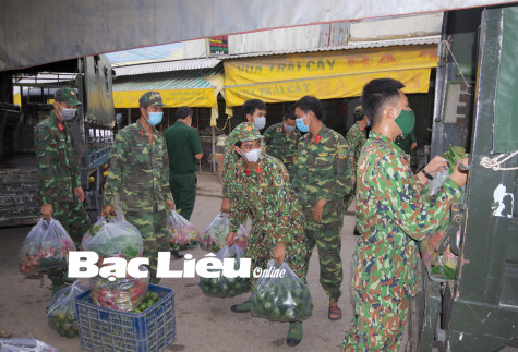 Lực lượng vũ trang tỉnh giúp dân vận chuyển, tiêu thụ hàng hóa trong mùa dịch. Ảnh: T.Đ