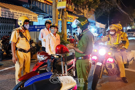 | Đội Cảnh sát giao thông Công an TP Cà Mau thường xuyên tuần tra kiểm soát vào ban đêm. |
