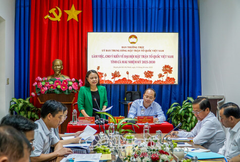 Chiều 31/10, tại TP Hồ Chí Minh, Ban Thường trực Uỷ ban Trung ương MTTQ Việt Nam có buổi làm việc, cho ý kiến về công tác chuẩn bị Đại hội MTTQ Việt Nam tỉnh Cà Mau nhiệm kỳ 2025-2030.