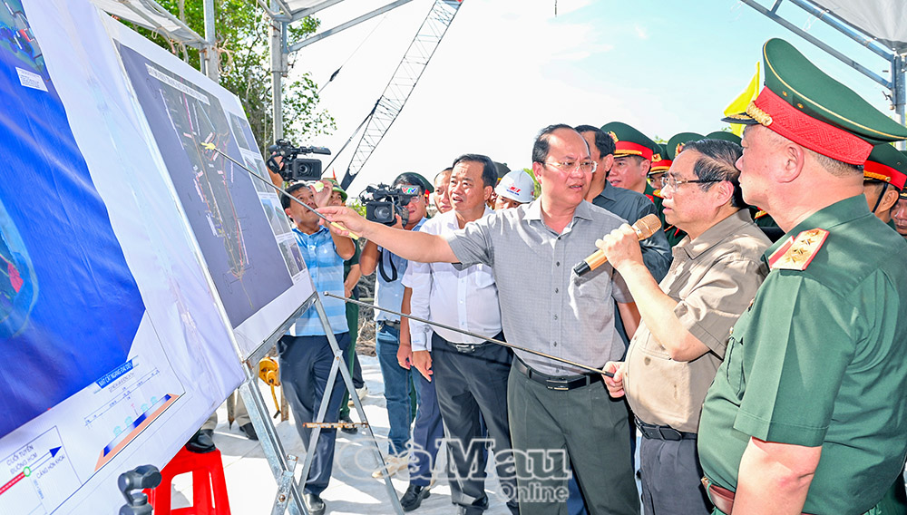 Thủ tướng Chính phủ Phạm Minh Chính kiểm tra tiến độ các dự án trọng điểm tại xã Đất Mũi.
