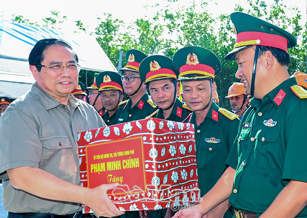 Dịp này, Thủ tướng Phạm Minh Chính thăm và tặng quà, động viên cán bộ, chiến sĩ, kỹ sư tham gia xây dựng các công trình.