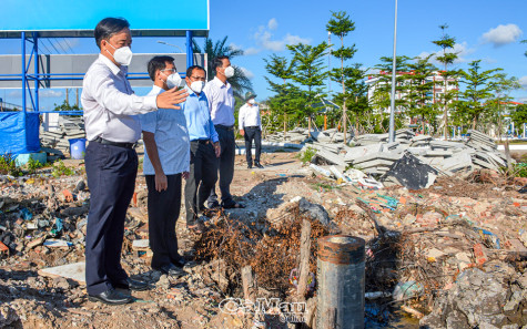 (CMO) Chiều 25/4, Uỷ viên dự khuyết BCH Trung ương Đảng, Phó bí thư Tỉnh uỷ, Chủ tịch UBND tỉnh Cà Mau Huỳnh Quốc Việt có chuyến khảo sát tiến độ Dự án đầu tư xây dựng bờ kè chống sạt lở khu dân cư thị trấn Năm Căn.