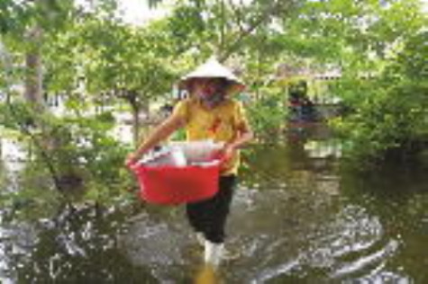 Chị Thủy mang ủng, ôm mớ chén dĩa về nhà. Con đường bê tông rộng khoảng 5 tấc nằm ẩn sâu dưới mặt nước và mọc đầy rong rêu trơn nhẵn. Trong nhà mùi ẩm mốc nồng nặc, đồ đạc đặt lộn xộn và chất thành từng đống cao trên giường, trên những nơi có thể miễn là... cao hơn mặt nước. Những tấm gạch tàu dưới nền giờ đã trôi lêu bêu không phương định. Nước và cát lạo xạo dưới chân...