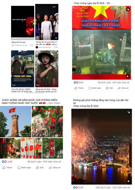 Mạng xã hội tràn ngập hình ảnh mừng ngày đất nước thống nhất trong ngày 30/4 vừa qua. Ảnh: Nguồn Facebook, TikTok